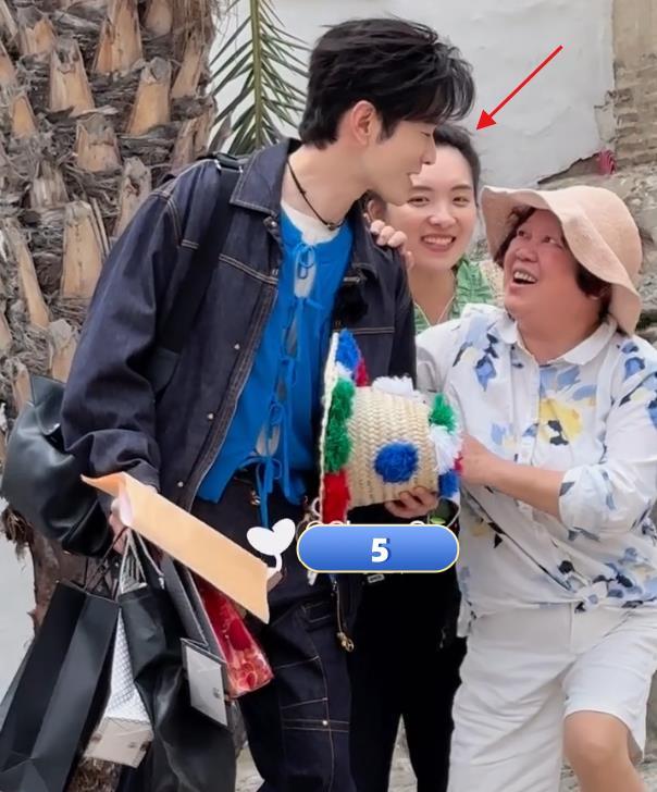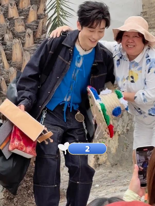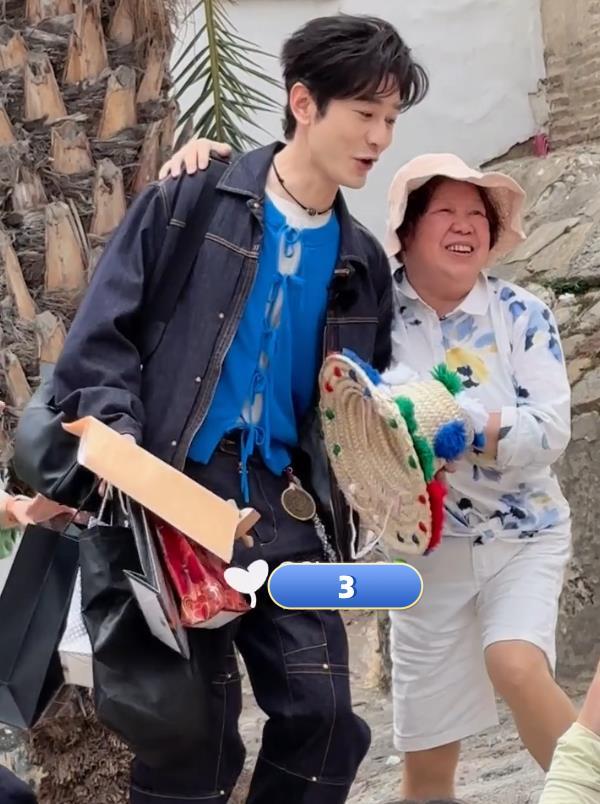 黄晓明还非常贴心,她们录制的地点路面高低不平,走路要十分小心,他看阿姨站的很快,很快稳住了身形,屈膝跟阿姨合影。