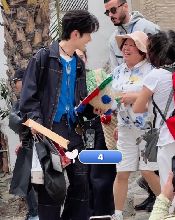 黄晓明手里拿着那么多东西,还要屈膝跟阿姨合影,同时还要注意阿姨的安全,因为阿姨站的地方老高了,一个站不稳摔倒了怎么办。